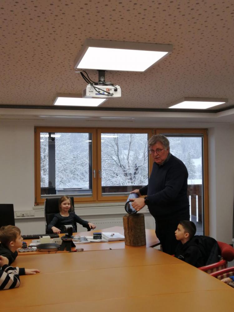 Fast wäre unsere Amelie Bürgermeisterin geworden: Für 30 Minuten durfte sie auf dem Chefsessel Platz nehmen, dann hat BGM Martin Schädle aber doch wieder sein Amt übernommen. Am 28.1. wurden wir auf dem Gemeindeamt empfangen. Die freundlichen Mitarbeiterinnen und Herr Bürgermeister haben uns über ihre Arbeit und Aufgaben informiert. Wir hatten auch viele Fragen und Bürgermeister Martin hat ganz toll erklärt, was in der Gemeinde Grän los ist und konnte uns einen genauen Einblick zum Thema Wasserversorgung geben. Anschließend besuchten wir noch die Gemeindebücherei und durften die Garagen und den Aufenthaltsraum der Feuerwehr sehen. Wir bedanken uns recht herzlich für die Jause, Getränke und diesen tollen Vormittag bei euch!