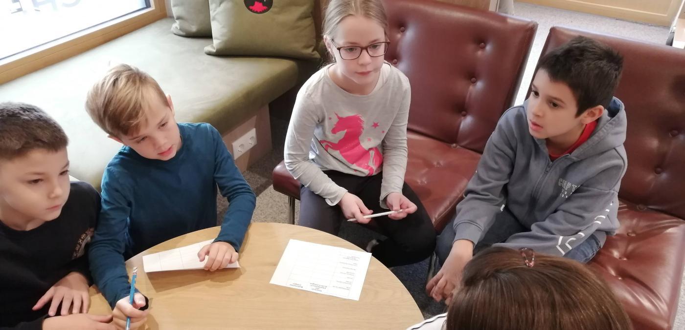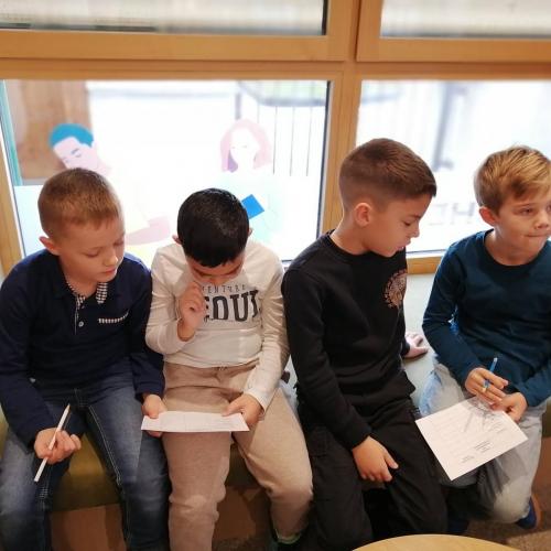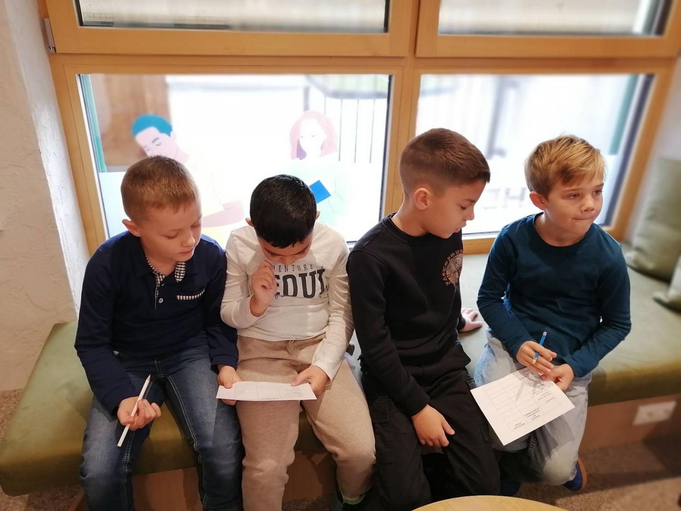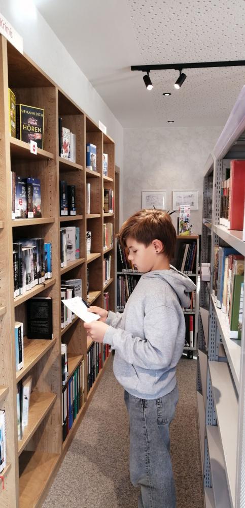 Zuerst durften die Kinder der 2., 3. und 4. Schulstufe kommen, denn hier gab es allerhand zu tun: Wir wurden um Hilfe gebeten, einige Bücher zu finden - also eine richtige Bücherrallye - um gleichzeitig in Partnerarbeit Rätsel zu lösen. Dabei konnten wir in den Regalen stöbern und auch vieles über die Arbeit in der Bücherei erfahren.