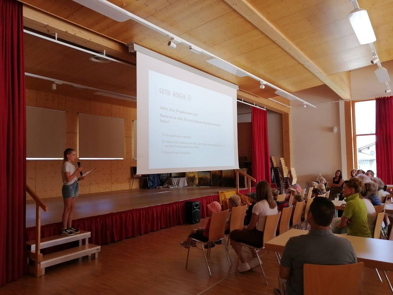 Am vorletzten Schultag luden wir Familienmitglieder, Kindergartenkinder, Personen der Tagesbetreuung, Bürgermeister und Mitarbeiter der Gemeinde, Polizei und Pfarramt ein, welche uns in diesem Schuljahr besonders unterstützten und um ihnen eine Freude zu bereiten.