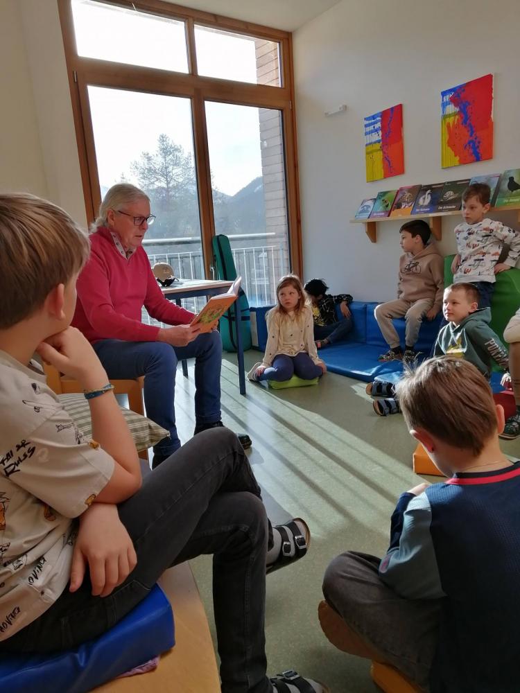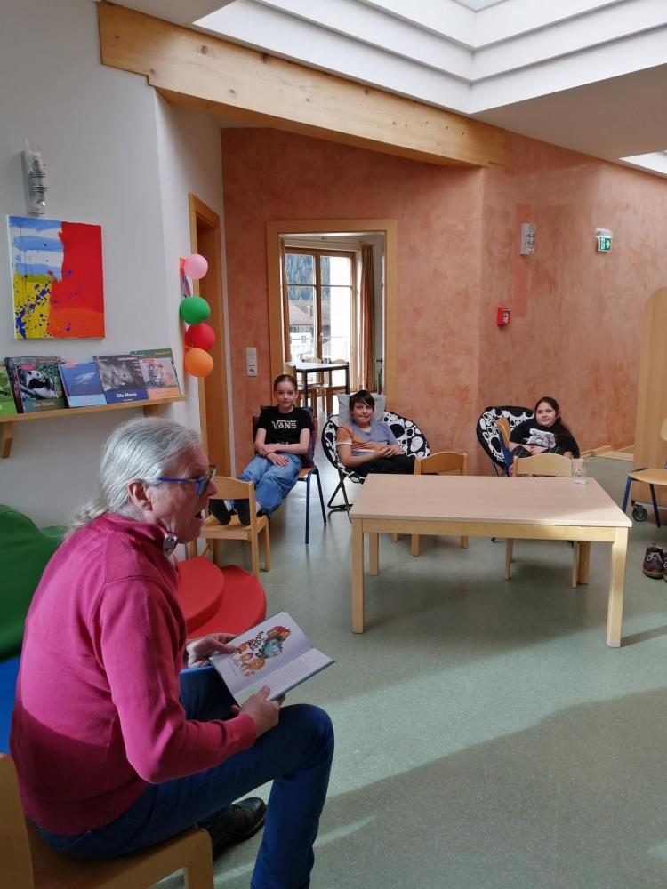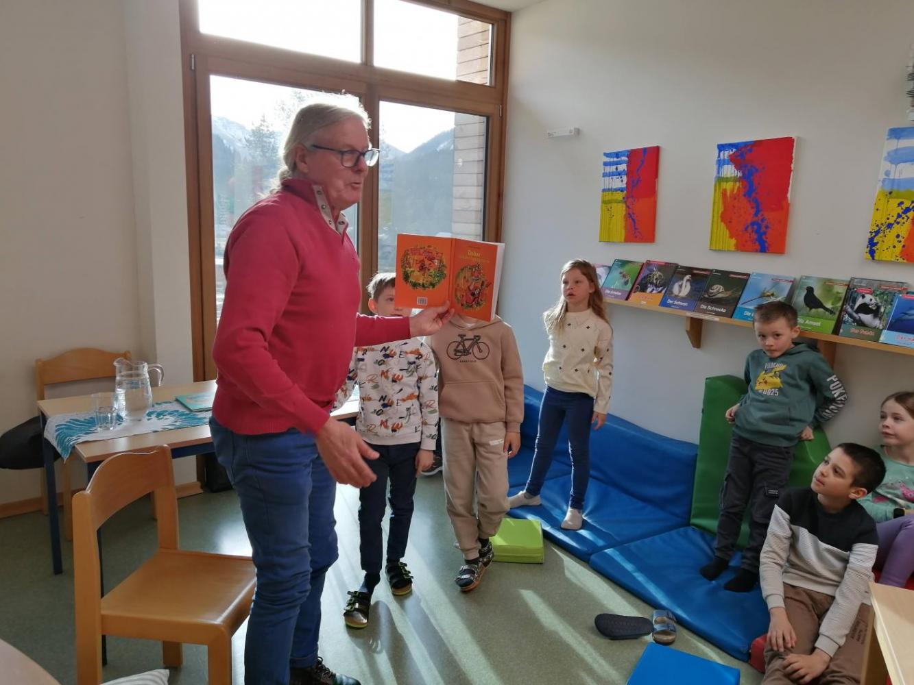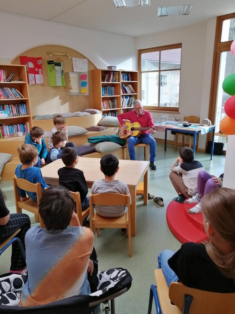 An der VS Grän begrüßten wir den Kinderbuchautor Johann "Hans" Kapferer. Der kreative Geschichtenschreiber Hans entführte uns zuerst in die Welt von Dobar, dem Tiger, der unbedingt das Gitarrespielen erlernen wollte. Der Höhepunkt war eine lustige Gitarreneinlage, die wir nicht so schnell vergessen werden.