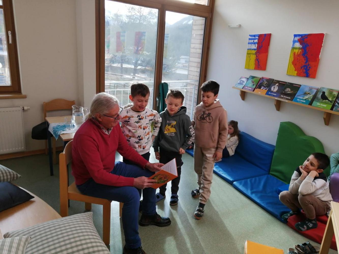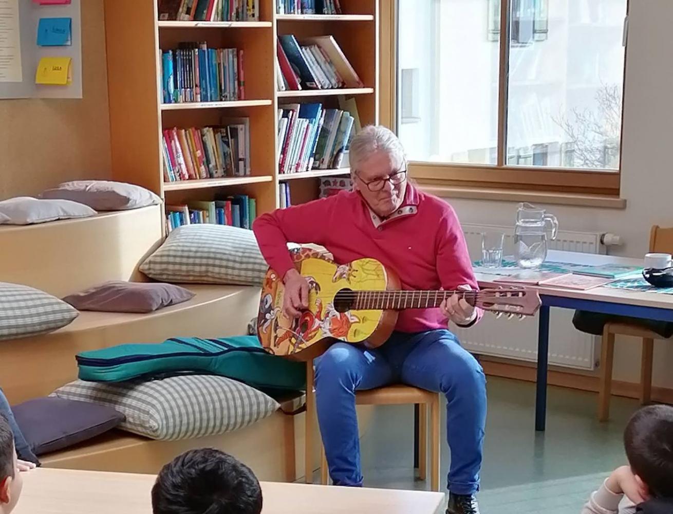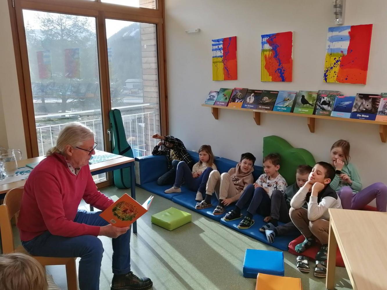 An der VS Grän begrüßten wir den Kinderbuchautor Johann "Hans" Kapferer. Der kreative Geschichtenschreiber Hans entführte uns zuerst in die Welt von Dobar, dem Tiger, der unbedingt das Gitarrespielen erlernen wollte. Der Höhepunkt war eine lustige Gitarreneinlage, die wir nicht so schnell vergessen werden.