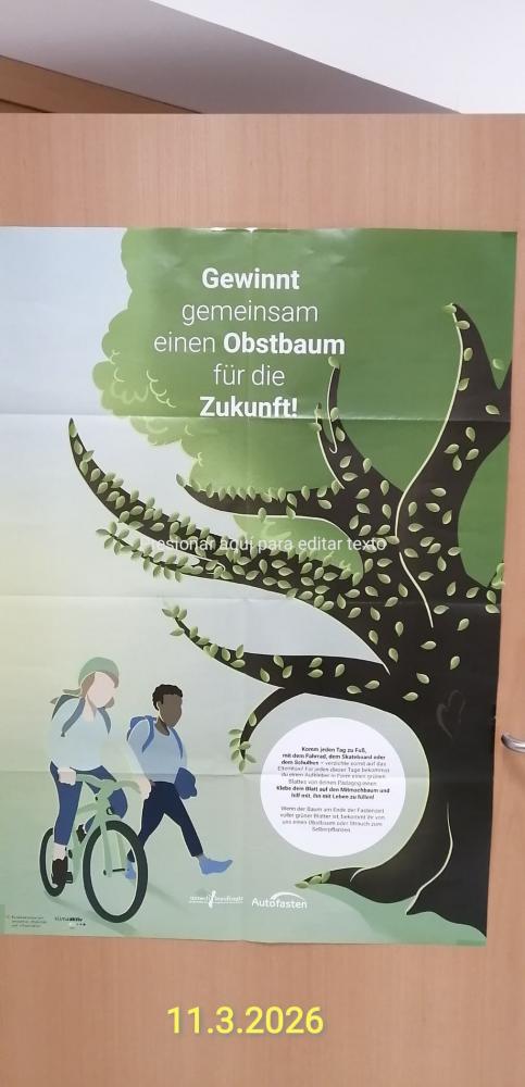 Autofasten heißt, dass man auf das Auto verzichtet, wenn es möglich ist. Dies haben wir von Beginn der Fastenzeit an gemacht und klebten jeden Tag ein Blatt auf das Baumplakat, wenn wir einen Autoweg gespart hatten. Also wenn wir zu Fuß zur Schule gekommen sind oder mehrere Kinder an einer Fahrgemeinschaft teilgenommen haben.