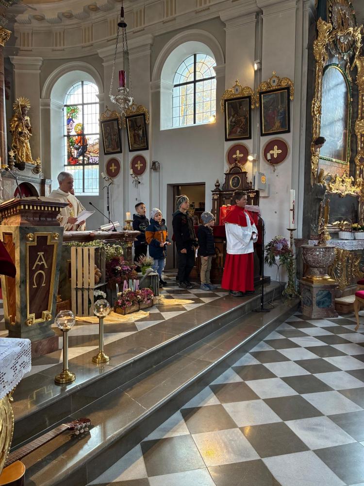 Sankt Wendelin: Gemeinsam mit den Kindern des Kindergartens beteiligten wir uns an den Vorbereitungen zur Messgestaltung zum Patrozinium am 20.10. zu Ehren des heiligen Wendelin. Nachher bekamen alle von Herrn Pfarrer einen Schutzengel geschenkt und ein Wendelinsbrot - vielen Dank.