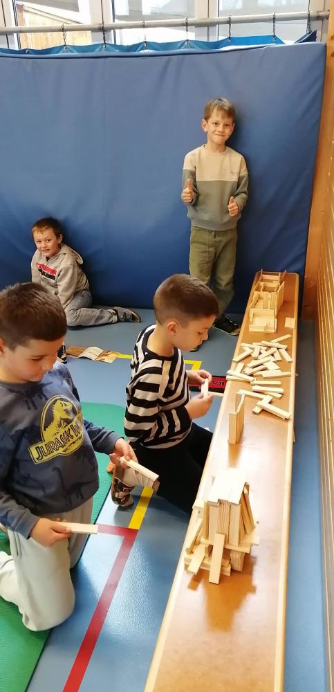 Pausenspiele draußen und drinnen: Wir an der VS Grän nutzen eigentlich fast jede Gelegenheit, die Pause draußen in unserem tollen Garten zum Laufen, Spielen, Bauen, Schaukeln, Balancieren, "Fußballen" oder mit Traktor, Rad und Co. Runden zu drehen. Zuletzt machten uns Wind und Wetter aber einen Strich durch die Rechnung. Doch auch im Turnsaal können wir die Bewegungspausen nutzen.