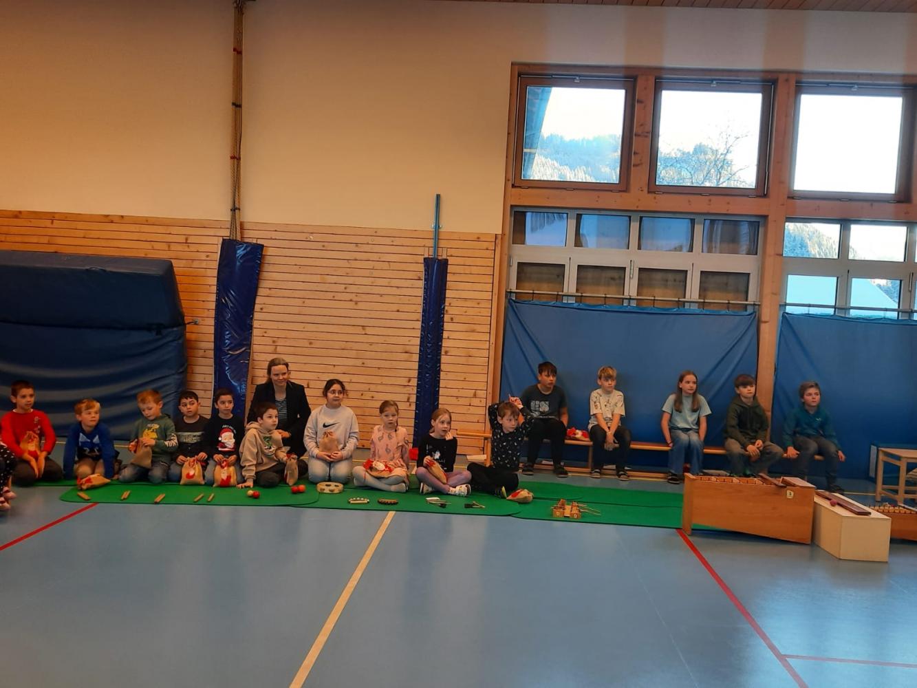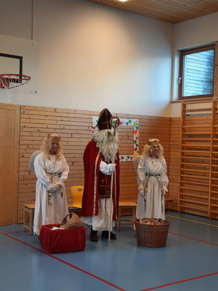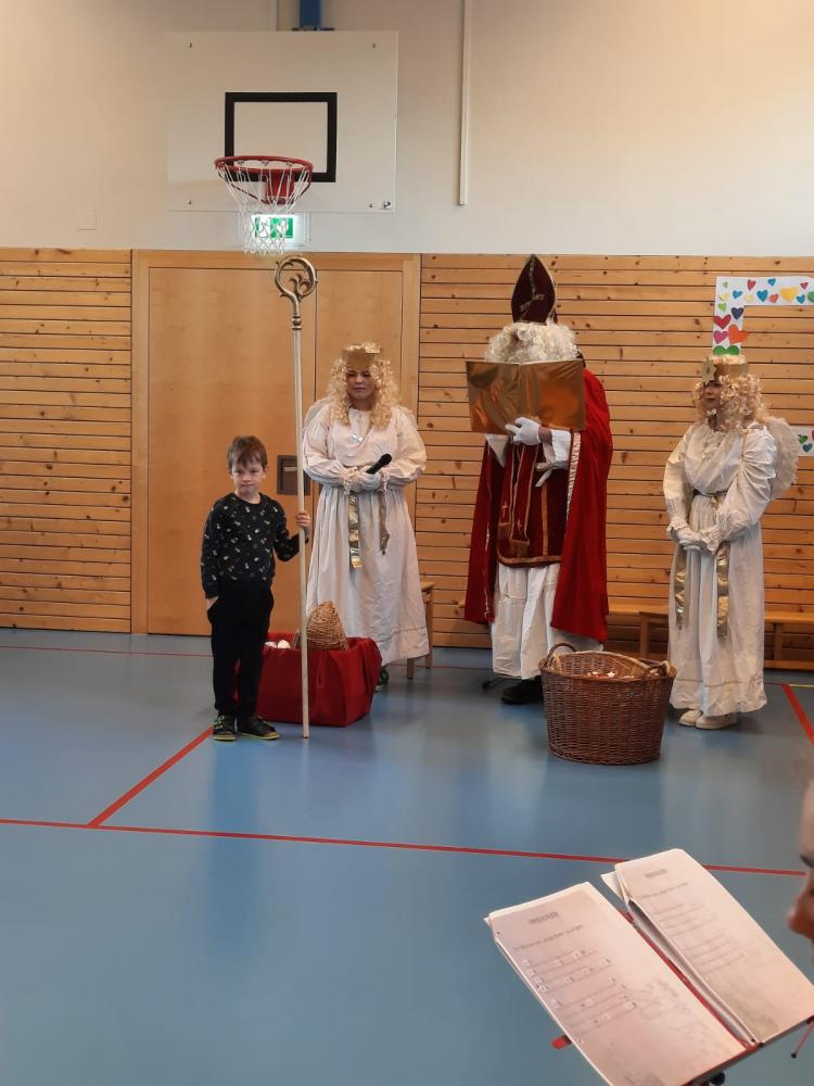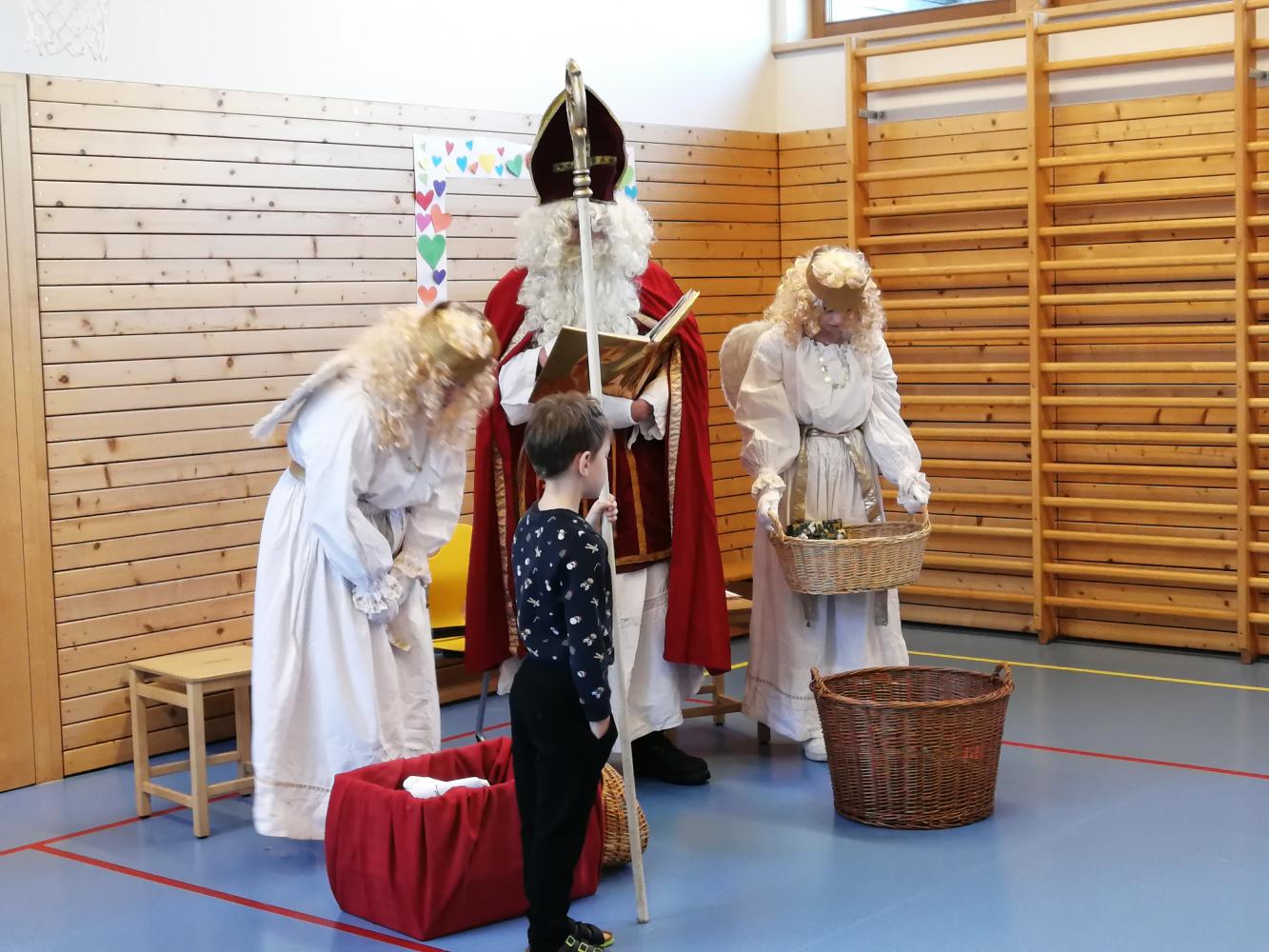 Gegen kurz nach 9 Uhr versammelten wir uns gemeinsam im Turnsaal. Die Schülerinnen und Schüler der 2.-4. Schulstufe lasen einen Text über den Bischof Nikolaus von Myra und wie er den Menschen, aber vor allem Kindern in Not gerne half.