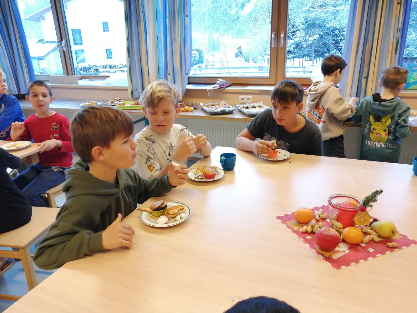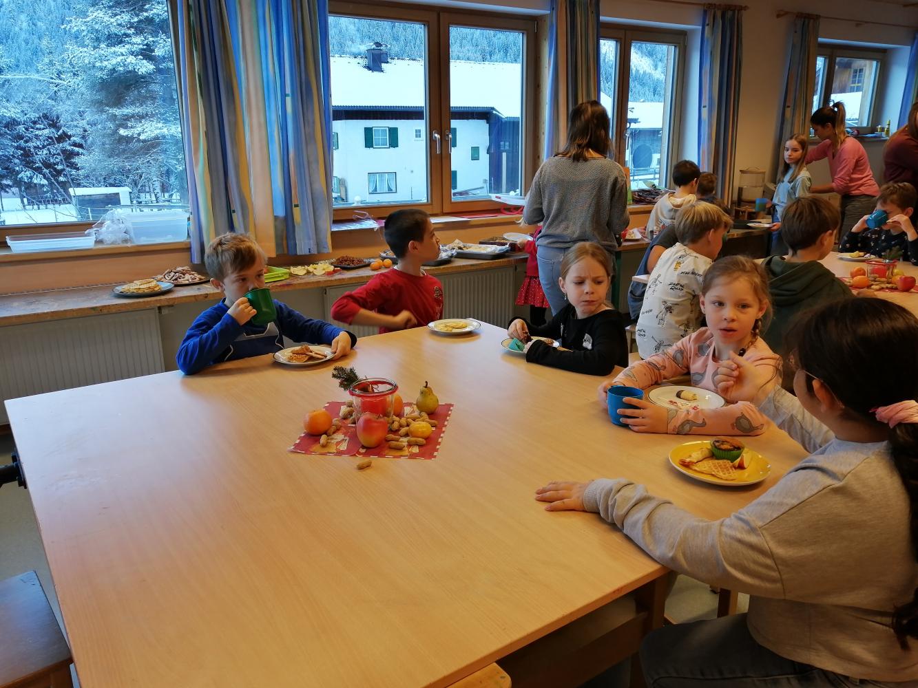 Im Anschluss durften wir noch bei einer gemütlichen Nikolausjause beisammensitzen. Vielen Dank an Carmen, die Eltern der VS-Kinder und unsere Elternvertreterin Lena. Nur durch all eure Mithilfe durch das Backen, Zu- und Vorbereiten konnte die Nikolausjause erst möglich gemacht werden.