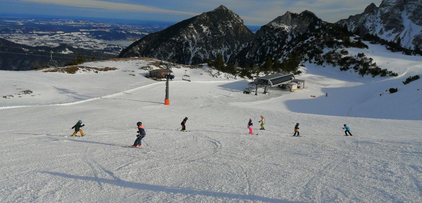 In Gruppen von Anfängern bis Geländeprofis stellten die Kinder ihr Können unter Beweis und tobten sich auf der Märchenwiese, am Schachen und seinen Waldwegen, am Jöchle, im Gelände und auf der Talabfahrt aus.