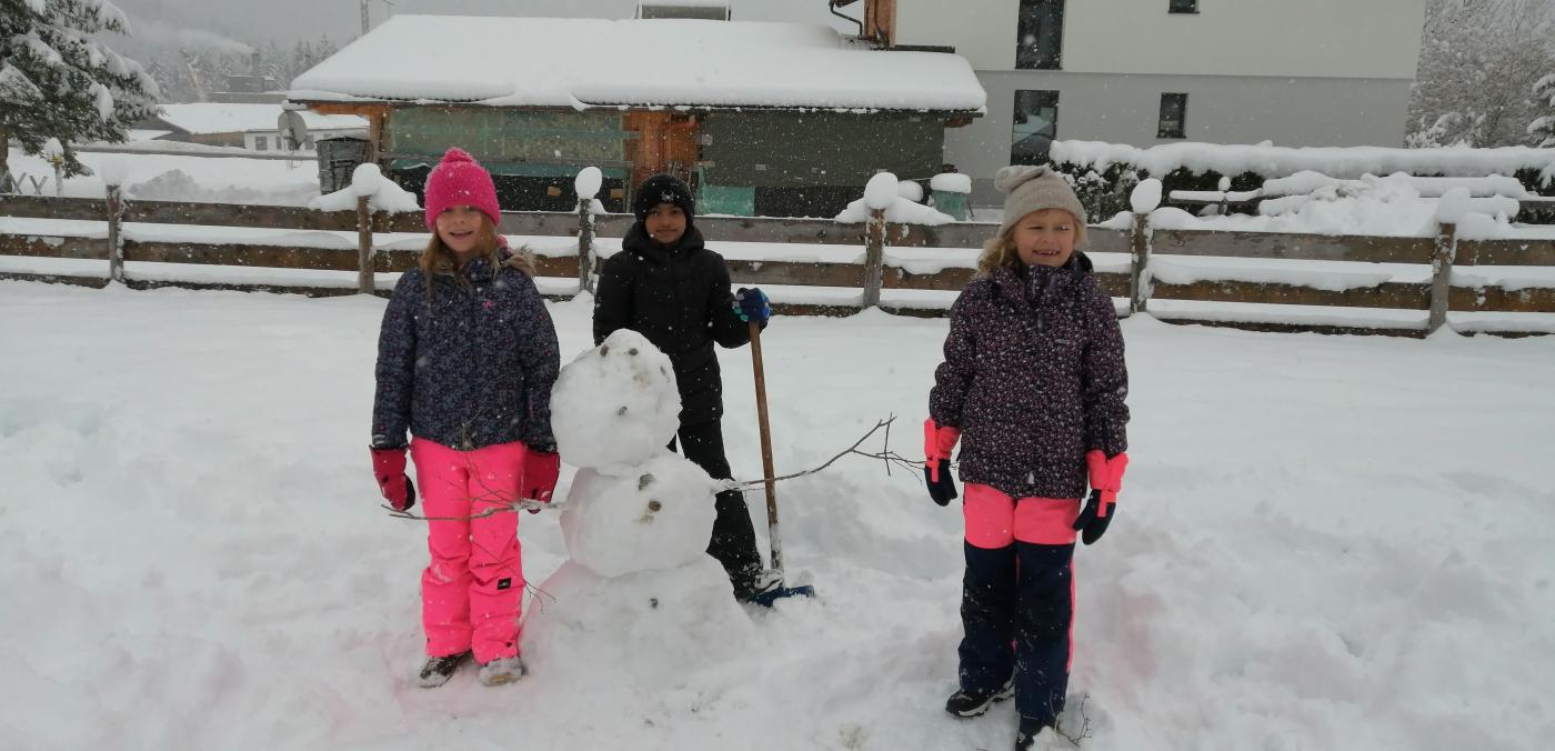 Bereits letzte Woche hat der Winter Einzug gehalten. An der VS Grän freuten wir uns sehr darüber! Zudem klingelte es heute überraschenderweise an der Tür - nanu, da haben wir wohl einen Besucher verpasst!? Nein, es war natürlich nicht der tolle Schneemann aus dem Garten, aber der Besucher hat unsere Nikolaustaschen reichlich befüllt und uns einen Brief hinterlassen.